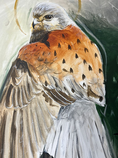 Acrylic painting of a kestrel, focusing on layered color, expressive brushwork, and symbolic light. Although oil painting was my concentration during my Bachelor’s degree, I apply similar techniques of glazing, blending, and texture to my acrylic work. This piece reflects my interest in capturing presence and emotion through color and form.