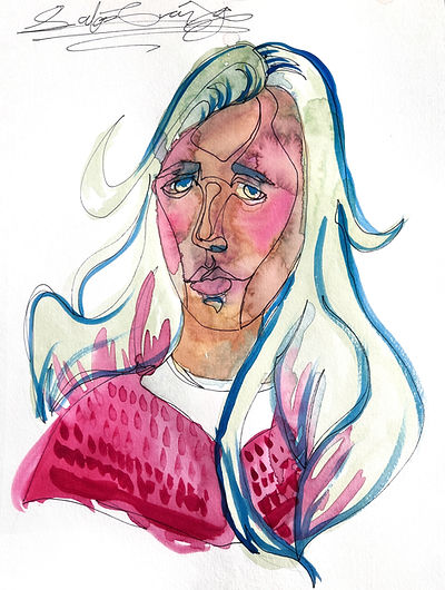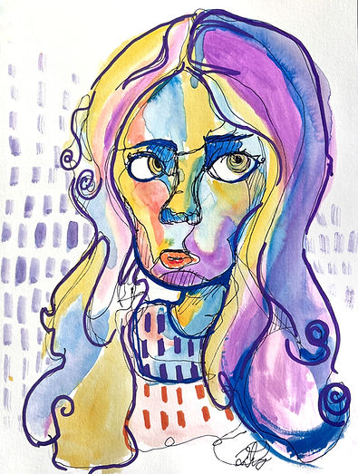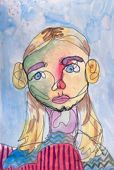 Continous Line Drawing + Watercolor